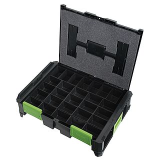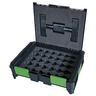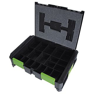 Content:1 220372 ABS plastic box „SysCon M“1 220399 Foam insert „SysCon“ 300 x 395 x 10 mm1 220374 Tools insert „SysCon“1 220379 Tool plate „SysCon“ 11 compartments